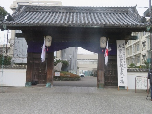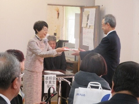 西条高校の卒業式に、校長名及び道前会会長名で、